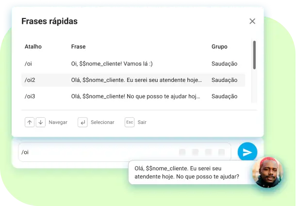 Personalize frases rápidas e transforme a dinâmica das interações para gerar o um atendimento mais ágil para os clientes e eficiente para a equipe