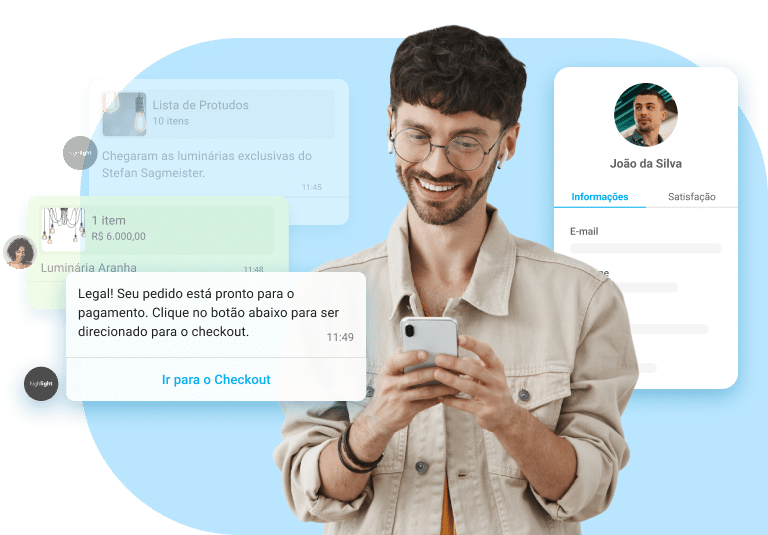 Da atração às vendas, o WhatsApp vai transformar a conversão do seu negócio! Crie campanhas ativas, dispare mensagens em massa, demonstre seu catálogo e permita que o cliente realize toda a jornada de compra no app.